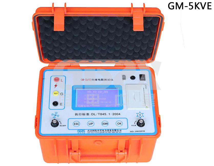 GM-5kV系列可調高壓數字兆歐表測試儀器是國電中星為解決高壓變電站、發電廠現場強干擾下對大型高壓變壓器、電機電器、遠程電力電纜或埋設電纜等電氣絕緣電阻特性的測試而設計研制。它亦可用于廣泛領域的電氣絕緣電阻特性測量。